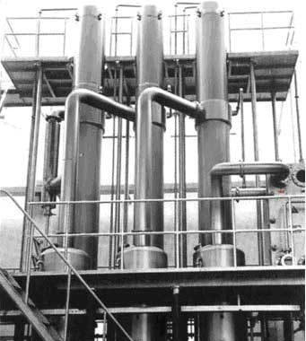 一、適用范圍 單效或多效降膜蒸發(fā)器,適用于牛奶、葡萄糖、淀粉、木糖、制藥、化工、生物工程、環(huán)保工程、廢液回收等行業(yè)進(jìn)行低溫連續(xù)式蒸發(fā)濃縮,具有傳熱效率高,物料受熱時(shí)間短等主要特點(diǎn),所以特別適用于熱敏性、粘滯性、發(fā)泡性等物料。 二、設(shè)備組成 各效加熱蒸發(fā)器、各效分離器、冷凝器、熱壓泵、殺菌器、保溫管、真空系統(tǒng)、各效料液輸送泵、冷凝排水泵、操作平臺(tái)、電器儀表控制柜及閥門、管路等系統(tǒng)組成。 三、主要特點(diǎn) 1.設(shè)備整個(gè)加熱系統(tǒng)由于蒸汽加熱均勻、料液為液膜式流動(dòng)蒸發(fā),所以具有傳熱效率高加熱時(shí)間短等主要特點(diǎn)。如再配置熱壓泵,更具節(jié)能降耗,蒸汽耗量低、冷卻水循環(huán)量低等優(yōu)點(diǎn)。 2.物料沿管內(nèi)壁向下加速加壓流動(dòng)蒸發(fā),適應(yīng)粘度較大的料液蒸發(fā)濃縮。 3.由于物料在每根管內(nèi)成膜狀蒸發(fā),料液加熱時(shí)間非常短,所以特別對食品蒸發(fā)濃縮非常有利,較大的保存了食品的營養(yǎng)成份。 4.蒸發(fā)過程在真空作用下,既****了物料的衛(wèi)生要求,同時(shí)****了環(huán)保要求,同時(shí)大大降低了蒸發(fā)溫度,加上配置熱壓泵,部份二次蒸汽經(jīng)熱壓泵重新吸入與生蒸汽混合,既節(jié)約了生蒸汽,同時(shí)由于通過熱壓泵的蒸汽呈噴射霧狀進(jìn)入加熱殼體,蒸汽迅速擴(kuò)散,料液加熱溫和,所以適合熱敏性物料的濃縮。 5.設(shè)備適用于發(fā)泡性物料蒸發(fā)濃縮,由于料液在加熱管內(nèi)成膜狀蒸發(fā),即形成汽液分離,同時(shí)在效體底部,料液大部份即被抽走,只有少部份料液與所有二次蒸汽進(jìn)入分離器強(qiáng)化分離,料液整過程沒有形成太大沖擊,避免了泡沫的形成。 6.對于食品蒸發(fā)濃縮,設(shè)備可同時(shí)具備殺菌功能,物料先經(jīng)預(yù)熱,然后進(jìn)入殺菌器,達(dá)到94度以上,維持24秒左右,即進(jìn)入一效效體,物料迅速閃蒸,溫度瞬間下降。 7.設(shè)備可配備CIP清洗系統(tǒng),實(shí)現(xiàn)**地清洗,整套設(shè)備操作方便,無死角。 8.設(shè)備連續(xù)進(jìn)出料。 9.設(shè)備可配置自動(dòng)化系統(tǒng),實(shí)現(xiàn)進(jìn)料量自動(dòng)控制,加熱溫度自動(dòng)控制,出料濃度自動(dòng)控制,清洗自動(dòng)控制,還可配備突發(fā)停電、故障時(shí)對敏感性物料的保護(hù)措施。其它安全、報(bào)警等自動(dòng)化操作、控制。